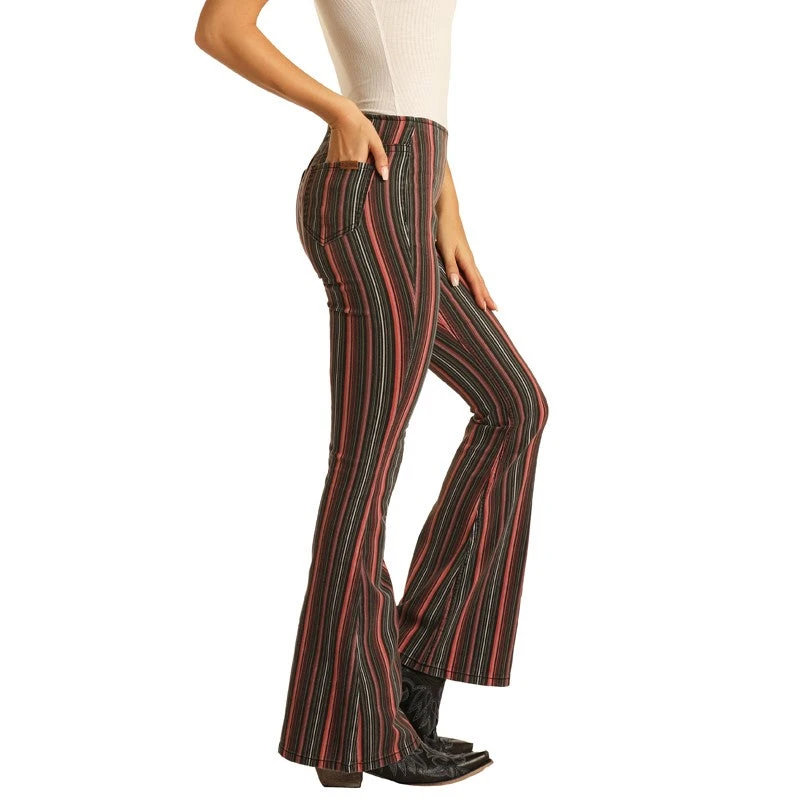 Rock & Roll Cowgirl Ladies High Rise Flare Black Denim Jeans WPH8175