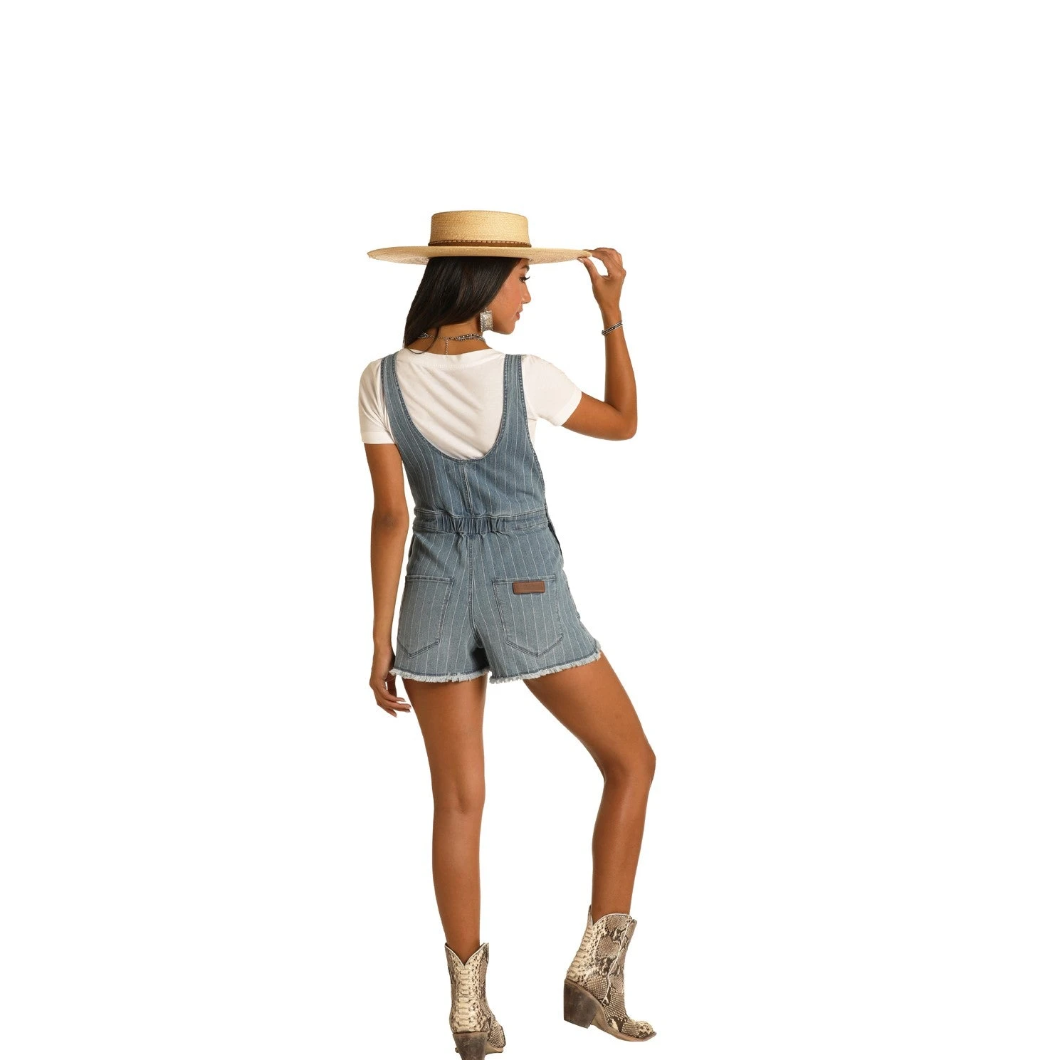 Rock & Roll Cowgirl Ladies Striped Denim Short Overalls WA-9752