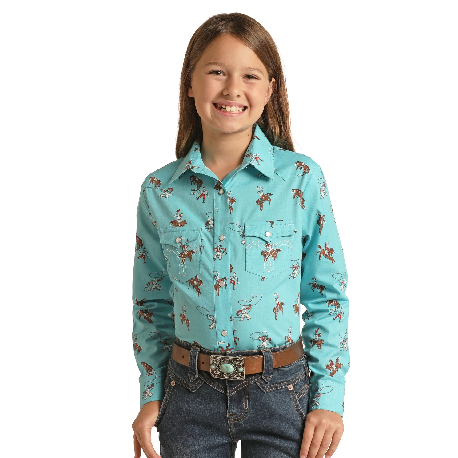 Rock & Roll Cowgirl® Youth Girl’s Blue Rodeo Snap Shirt WLGSOSR13L-89