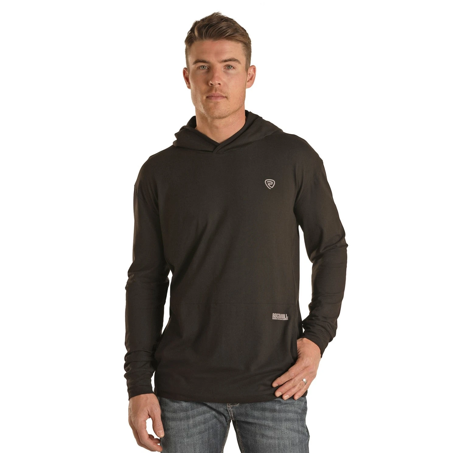 Rock & Roll Denim Logo Black Long Sleeve Hoodie P8H1531